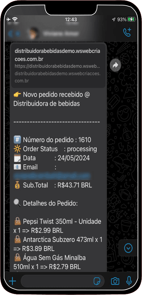 Receba seus pedidos instantaneamente através do WhatsApp e nunca mais perca tempo com seus clientes.